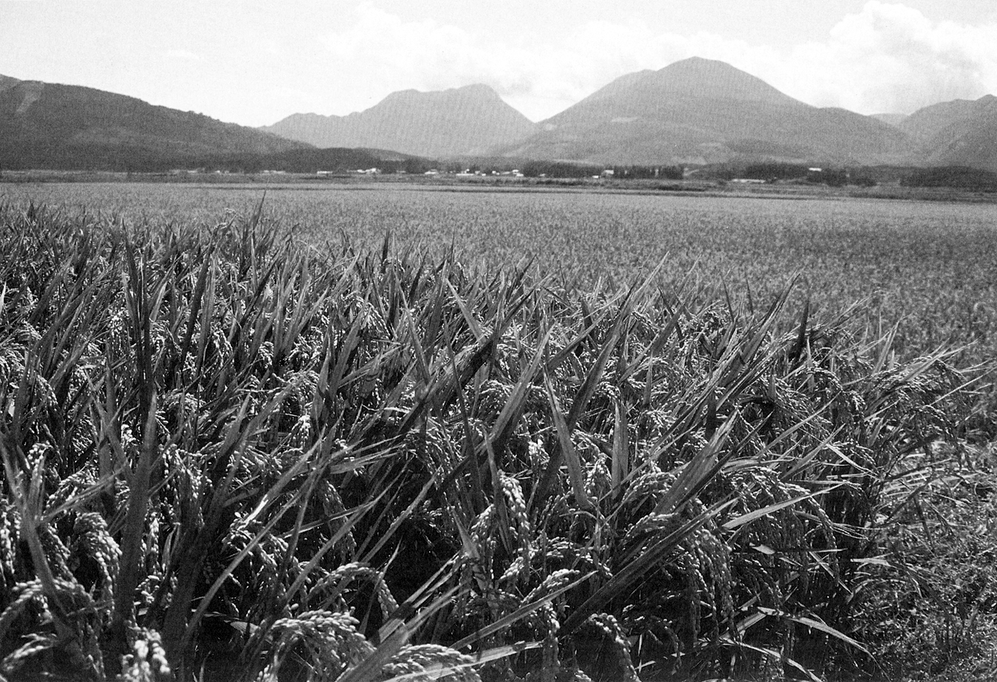 写真は、平成4年に開墾100周年を迎えた九重町の千町無田(せんちょうむた)地域。大分のお米の、実りの風景が一面に広がっていた。