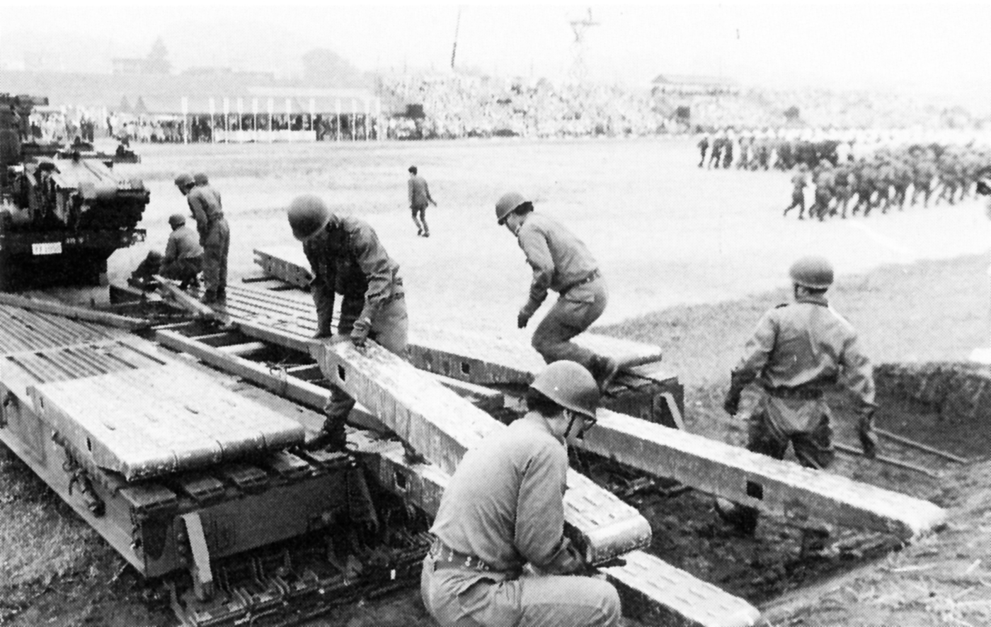 当時、梅雨期を控え、洪水時における関係機関の連携と水防体制の強化、水防技術の研鑽、水防に対する住民の理解を深めることなどを目的に、「平成5年度大分川・大野川水防演習」が同年5月19日、大分市畑中の大分川左岸で行われた。「橋梁架設」演習には自衛隊も出動した。すばやい作業に思わず息を呑む。この橋は40トンの重量に耐えられるようになっていた。