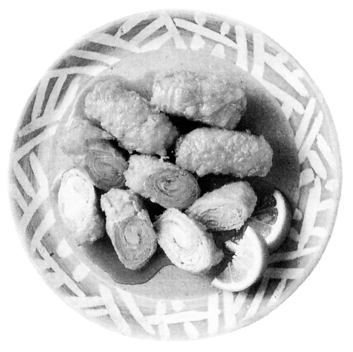 ●主材料(4人分) カボス3個 ねぎ2本 しょうが1かけ 豚肉(薄切り)20~24枚 ●作り方 (1)ねぎは4センチ長さに切ってごま油小さじ1で焼き色が付くまで焼き、冷ましておく。しょうがは千切りにする。 (2)豚肉は2枚ずつを少し重ねて広げ、ねぎしょうがをきっちりと巻き込む。 (3)カボスの絞り汁2個分、だし汁としょうゆ各大さじ3、酒と砂糖各大さじ2を合わせる。 (4)(2)に薄く小麦粉をまぶし、170度に熱した揚げ油で揚げてすぐに(3)の漬け汁に漬ける。 (5)(4)を器に盛り、くし形切りのかボス1個分を添える。