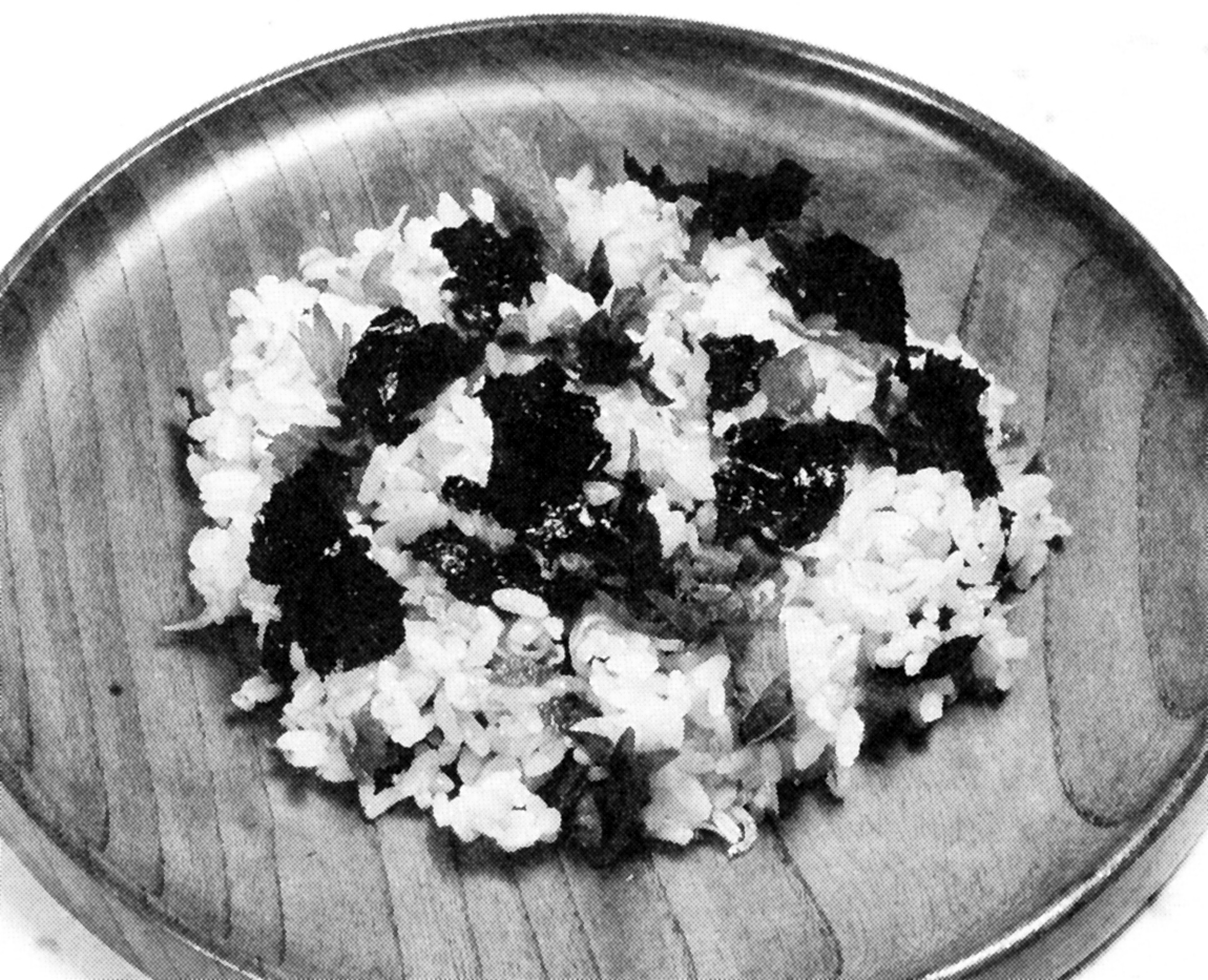 ●材料(4人分) ちりめんじゃこ30g 米3カップ A(酒大さじ1/2 酢大さじ1 塩小さじ1/2) 梅干30g 青じその葉20枚 ノリ2枚 ●作り方 (1)米をといでAと水を入れて白米を炊くと同量の水加減にし、ちりめんじゃこ、種を取った梅干を入れて炊飯器で炊く (2)ノリはもみノリにし、炊き上がったご飯にノリ、青じその葉の細切りを入れて混ぜ合わせる ポイント:梅干を小さくして炊き込まない