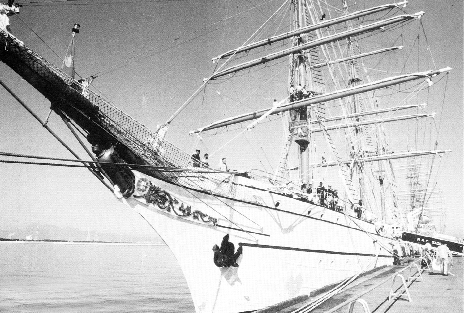 平成5年は日本・ポルトガル友好450周年の年であった。それを記念して平成5年9月11日から1カ月にわたって「フェスタ・ポルトガル・大航海ロマンと宗麟の夢」が大分港大在公共ふ頭で開催された。ポルトガル帆船ザグレス号の寄港にあわせ、日本の海王丸、マカオの帆船マカオ号も大分港大在公共埠頭に入港。会場では盛りだくさんのイベントが行われた。写真は、岩壁に横づけしたサグレス号の優美な純白の船体。