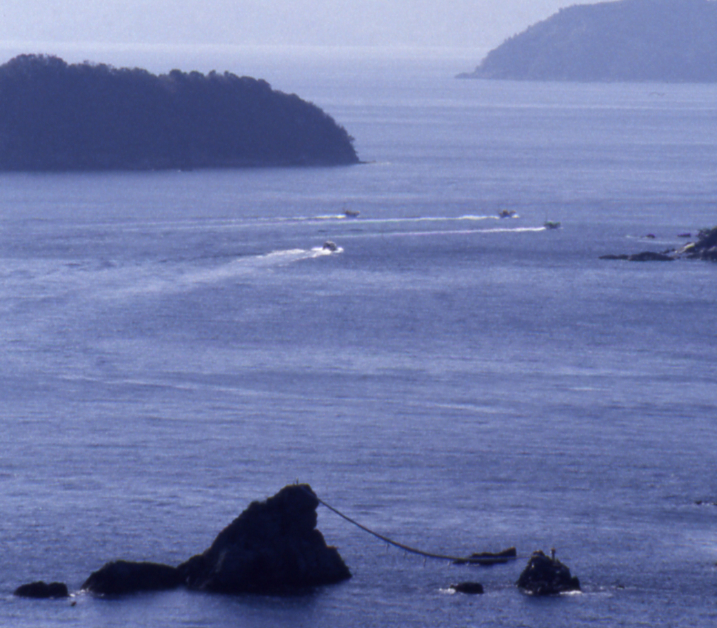 わが郷土、大分県には今なお素晴しい三態の海がある。黒潮の分流が北上して、豊かな魚群を運ぶ豊後水道。国東半島や姫島をとりまく瀬戸内の豊後灘。そして、広大な千潟域を有する豊前海である。漁を終え帰港する漁船。大分市佐賀関町にて