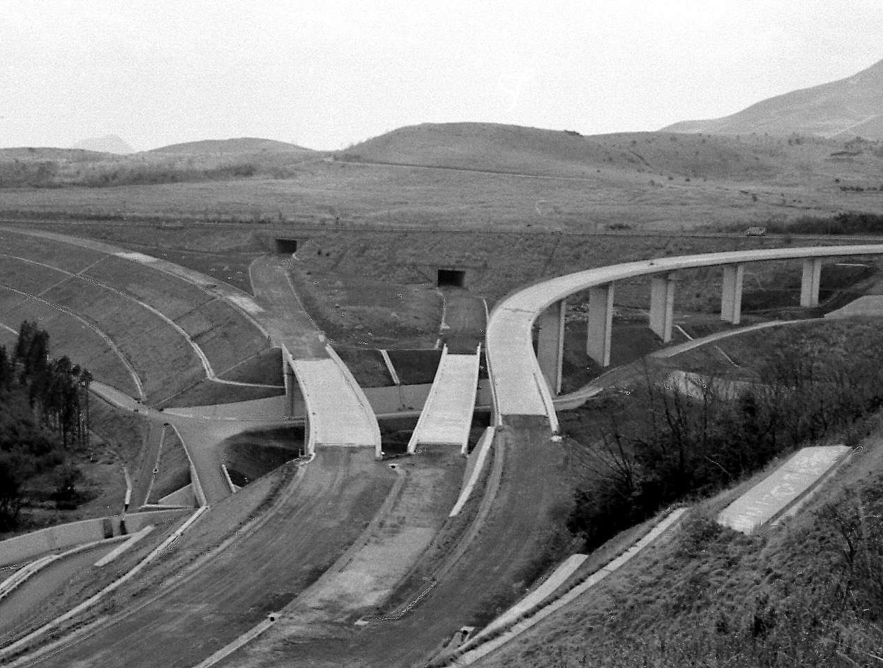 当時、九州横断自動車道や北大道路、東九州自動車道など九州内の高速交通体系の整備に伴い、21世紀の大分港は九州の東中央部に位置するという地理的・時間的優位性から、九州内の各都市を背後圏とする対関東・関西との国内貨物及び東南アジアやオセアニア等からの輸入貨物が集散される拠点港湾として、取扱貨物量が飛躍的に増加することが見込まれていた。写真は完成間近の九州横断自動車道と北大道路を連結する日出ジャンクション