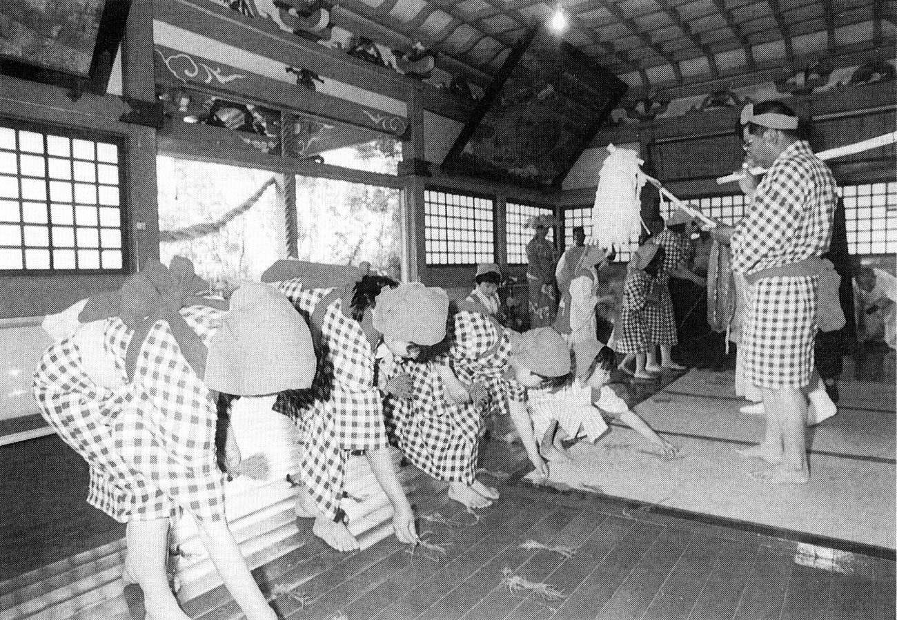 杵築市宮司の若宮八幡社御田植祭(県選択無形民俗文化財)が、平成6年4月6日、中津屋地区氏子が結成する御田植祭保存会の祭り奉仕によって行われた。この由緒ある御田植祭を、しっかりと守り続けている中津屋地区は、当時の戸数僅かに37戸。上は73歳の古老から、下は4歳児に至るまで、まさに老若男女相携えての祭り奉仕となり、素晴らしい祭り絵巻を繰り広げた。