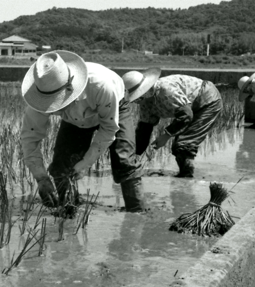 豊後表とは畳表に使われる七島藺で織った筵のこと。七島藺は、東南アジアが原産のカヤツリグサ架の植物で、漢文3年(1663年)、大分市の上人・橋本五郎左衛門が鹿児島のトカラ列島持ち帰って栽培を始めたといわれる。豊後表が国東半島の地場産業として成長して言ったのは、気候が適していること、栽培や整織が家内工業的で女性の労働力が生かせること、換金性が高いことなどであった。戦後は、工業化やみかん栽培の拡大などにより栽培面積は減少したが、当時は高級畳表として需要が多く、注文に応じきれないほどであった。
