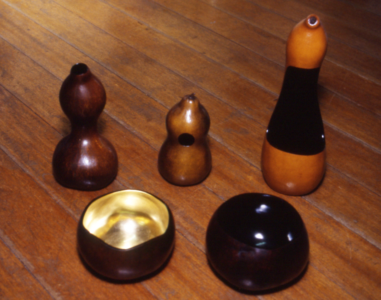 収穫したひょうたんは、20日間ほど水槽につけ、内部を十分腐敗させてから中身を取り除く。天日で一週間ほど乾燥させると、皮がカチカチになる。これにみがきをかけ、着色、加工をして商品を仕上げる。古来、ひょうたんは、酒器やひしゃくさらには祭礼の道具として生活の中に生きてきたが、当時は家庭用インテリア、カー用品まどさまざまな製品がつくられた。