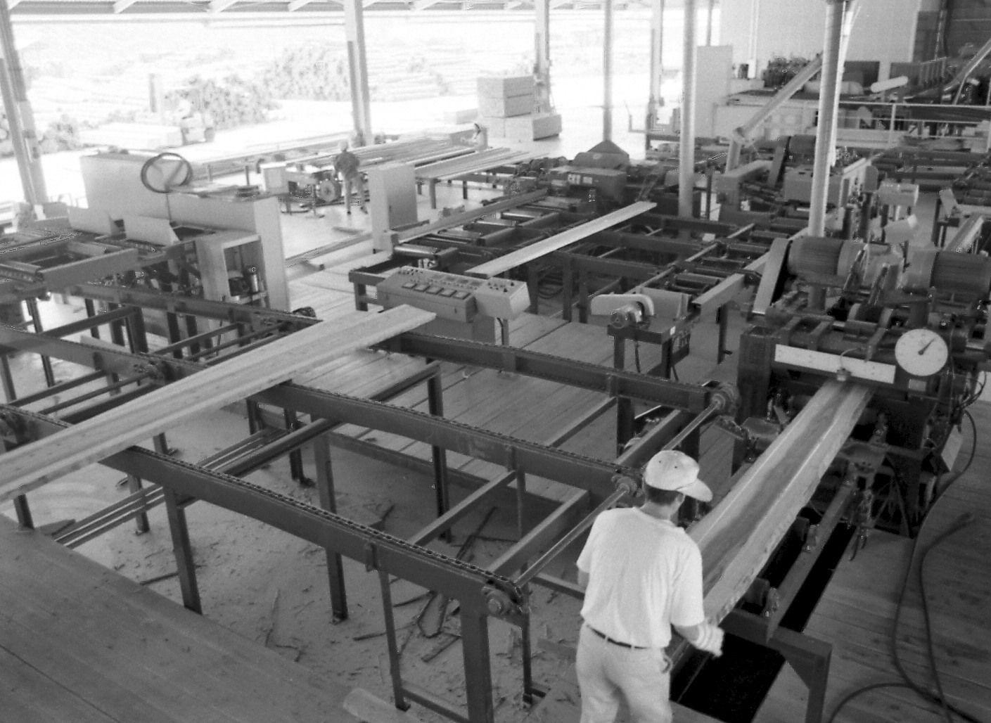 佐伯広域森林組合が平成5年6月にオープンさせた宇目木材加工流通センター。県産材の加工工場としては、県内でも有数の生産量を誇っていた。当時、佐伯広域森林組合専務理事だった高野さんは「今まで県産材は、寸法が違っていたり、曲がっていたりして、あまり高い評価を与えられてきませんでした。しかし、これからは寸法、品質の均一化を図り、信頼される県産材づくりをめざしていきたい」と今後の抱負を語った。