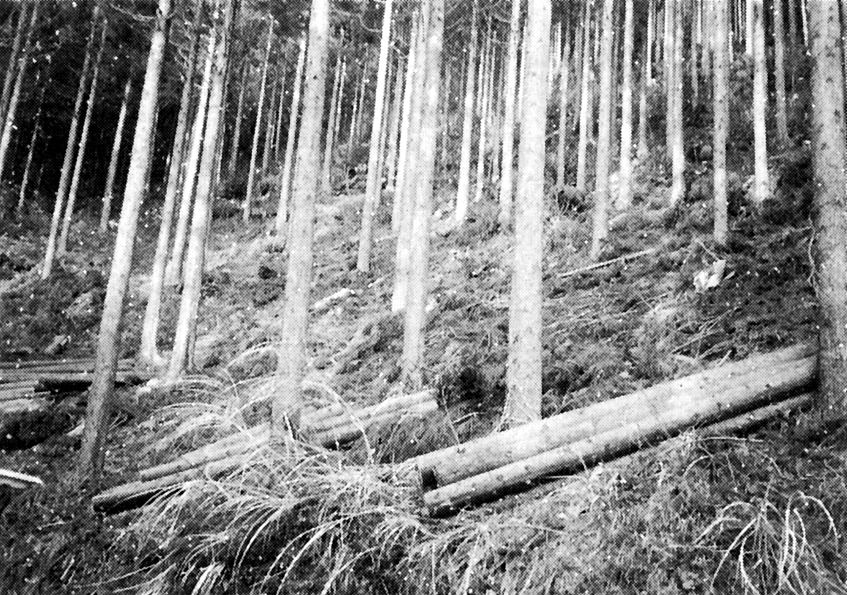 木が成長し、枝葉が重くなりあってくると、日光がささなくなって成長が悪くなり、病気や害虫、台風などの被害を受けやすくなる。そこで余分な木を間引き、のびのび成長できるよう間隔をとるのである。この作業が間伐である。最終的に木は、1ヘクタールあたり1,000本以下になる。