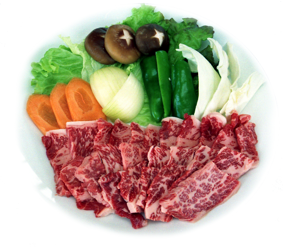 県畜産振興公社が経営する「町田バーネット牧場」のバーベキューハウスが平成7年4月26日、九重町町田にオープンした。大自然のすばらしい景観を眺めながら、自慢の豊後牛が食べられる。秋になると牧場周辺は、牧場の名前の由来にもなっているバーネット(日本名-われもこう)の可憐な花が咲き誇る。当時は、四季それぞれの美しい花を楽しめるハーブ園も開園に向けて準備中であった。写真は、特上ロースセット。やわらかい霜降り肉を、牧場オリジナルの本タレ、カボスタレ、ハーブソルトを使って食べる。