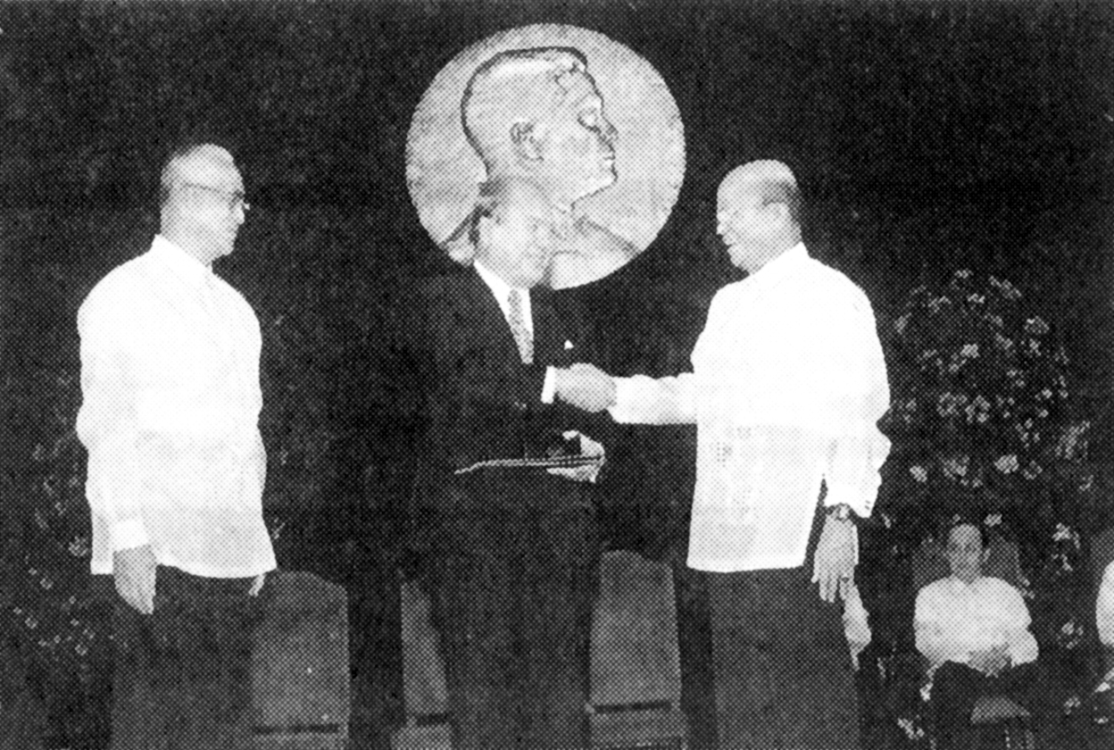 「アジアのノーベル賞」と呼ばれるフィリピンのマグサイサイ賞の受賞式典が平成7年8月31日、フィリピンのマニラ市内で行われ、平松知事が政治部門賞を受賞した。ラモン・マグサイサイ賞財団のビエンヴェニド・タン委員長のあいさつの後、各受賞者の功績が紹介され、平松知事らに表彰状とメダルが贈呈された。