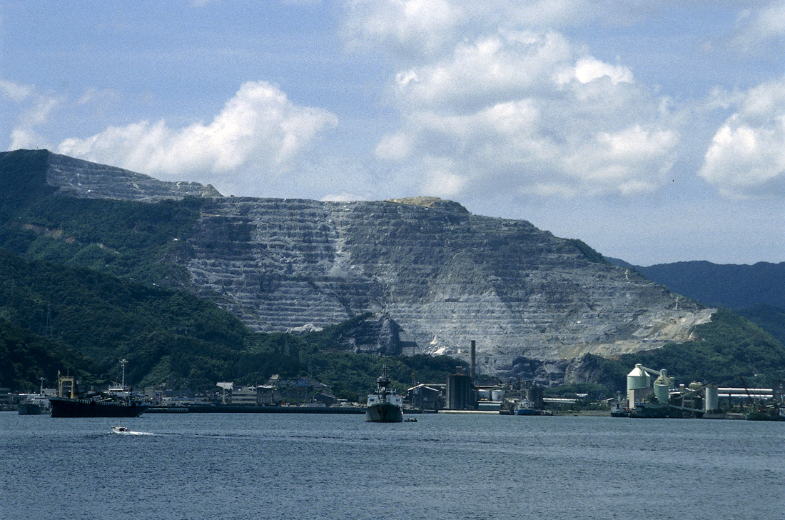 臼杵市から臼津バイパスのトンネルを越え、津久見市の方に下ってゆくと、右手に階段状に削りとられた、全山灰白色の石灰岩の山が見え、時々ハッパの音が聞こえてくる。これが胡麻柄(ごまがら)山で、津久見市の象徴的な風景である。