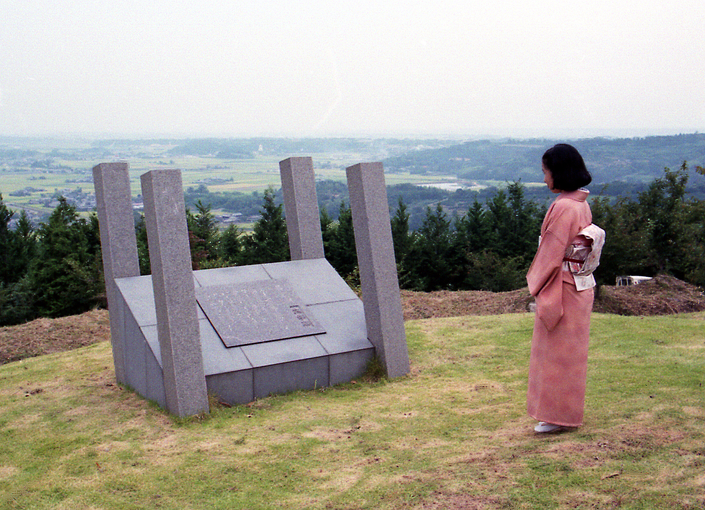 横光利一は明治31年、福島県に生まれた。父親は宇佐市赤尾の出身。大正12年に文壇デビューし、翌年は川端康成らとともに「文芸時代」を創刊。新感覚派と呼ばれ、当時のプロレタリア派と対峙する。長編小説「旅愁」は昭和12年から執筆が始められた。日本の「戦争と平和」の時代を描出しようと、彼が野心に燃えて書かれた作品といわれる。主人公や代行一浪が、父の納骨のため郷里大分に帰り、父祖の地を確認する場面が描かれている。宇佐市城山の横光利一文学碑には、その一説が掘り込まれている。「家を一歩外に出たもので、胸奥に絶えず描き求めているふるさと、今身を置く郷との間に心を漂わせぬものは、おそらく誰一人もいなかったことだろう」。写真は、宇佐市城山(光岡城跡)の横光利一文学碑から宇佐平野を望む。