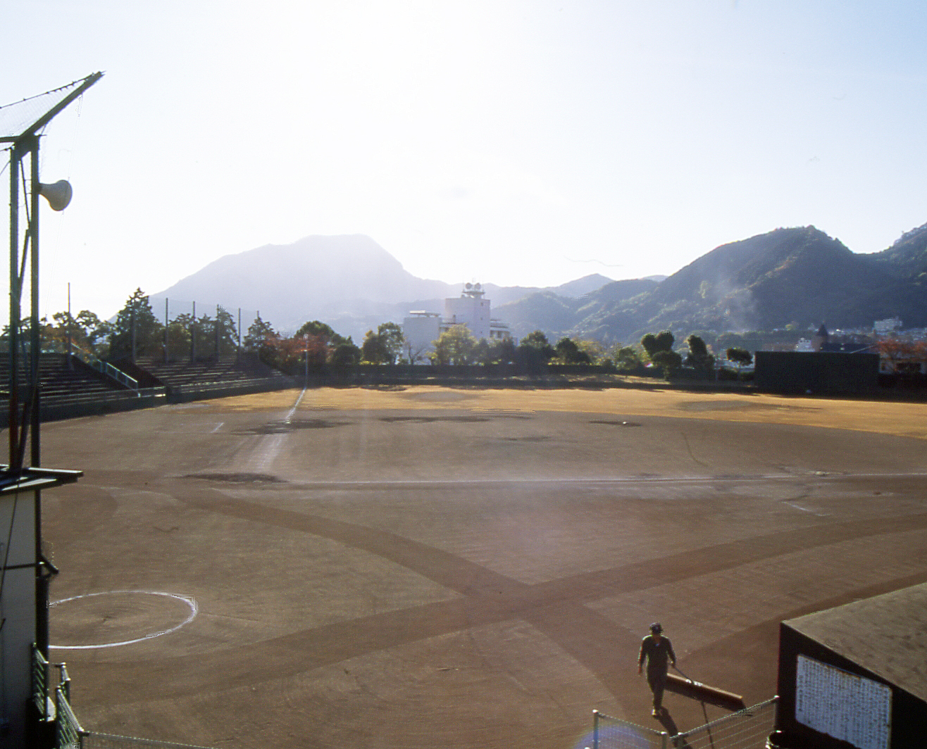 赤瀬川隼は、昭和6年三重県四日市に生まれた。10歳から18歳までの青少年期を大分市で過ごす。県立大分第一高校(現大分上野丘高)を卒業後、銀行勤務などを経て文筆業に入る。昭和58年奇想天外な野球小説「球は転々宇宙間」で吉川英治新人賞を受賞し、本格的デビュー。今回、代表作「白球残映」で第113回直木賞を受賞した。写真は別府市営別府球場。