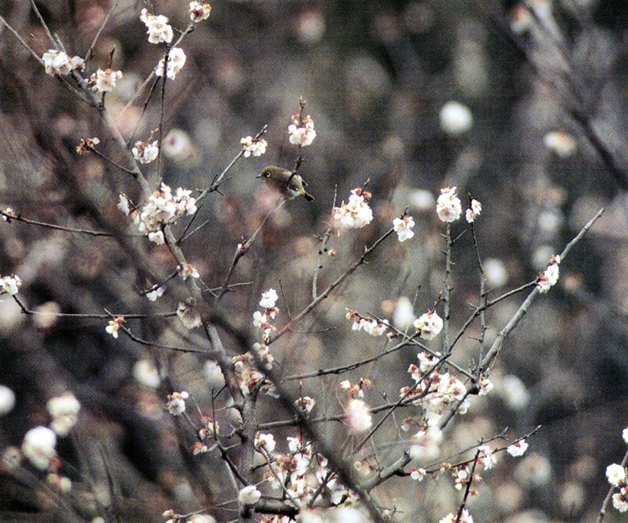 身近な野鳥として知られるメジロは、全国どこでも、ごく普通にいる留鳥で、暖地のツバキ林などに群れて住んでいる。樹木の小枝や葉の間を活発に行動し、小さい昆虫をとって食べたり、花蜜を吸ったりする。