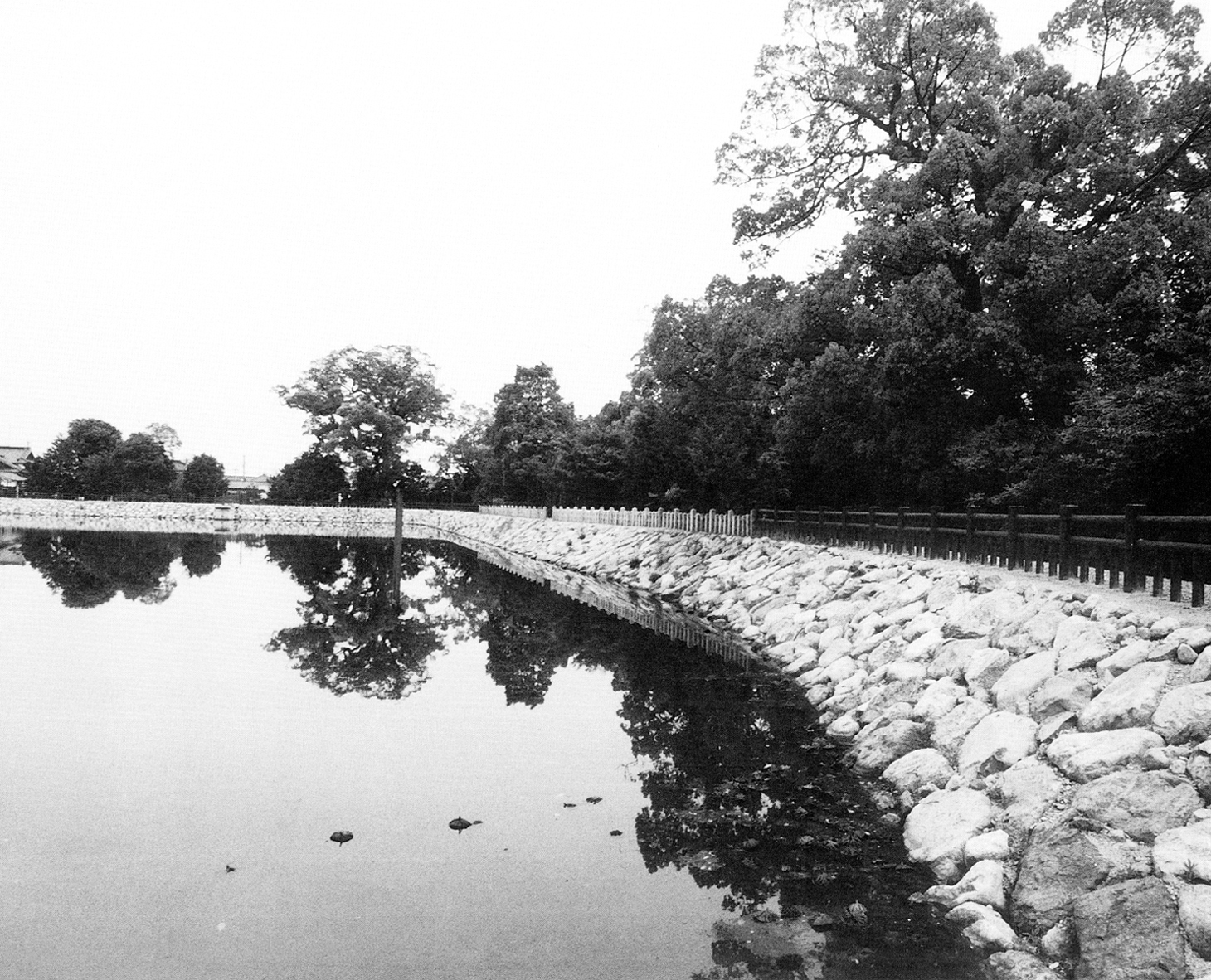 国指定の重要文化財である中津市大貞の薦(こも)神社。その御神体である三角池には、ハスの密生やマコモの群落などが見られ、水生植物群落は県の天然記念物に指定されている。一方、三角池は現在も農業用ため池として利用されている。承知年間(834~848)に建築された社殿より古いとされるこの池は、大陸の優れた技術を持っていた渡来人の手により築造されたものと見られている。