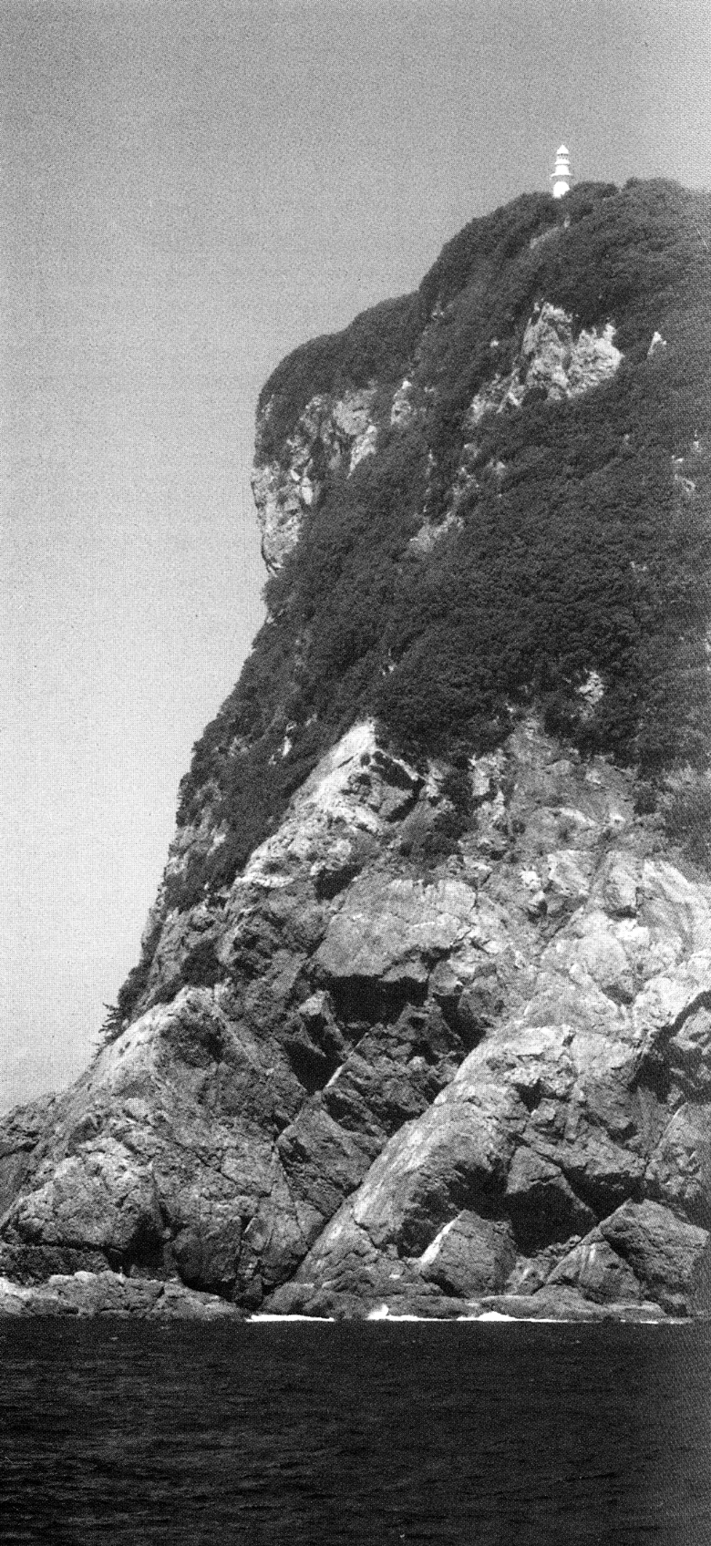 九州の一番東の端は、竜の頭のようにのびた鶴見半島の先っちょである。東経132度5分、九州で最初に太陽が昇る位置にある鶴御崎(つるみざき)を海から見上げてみると、200メートルもの高さの断崖絶壁がのしかかるように迫ってくる。