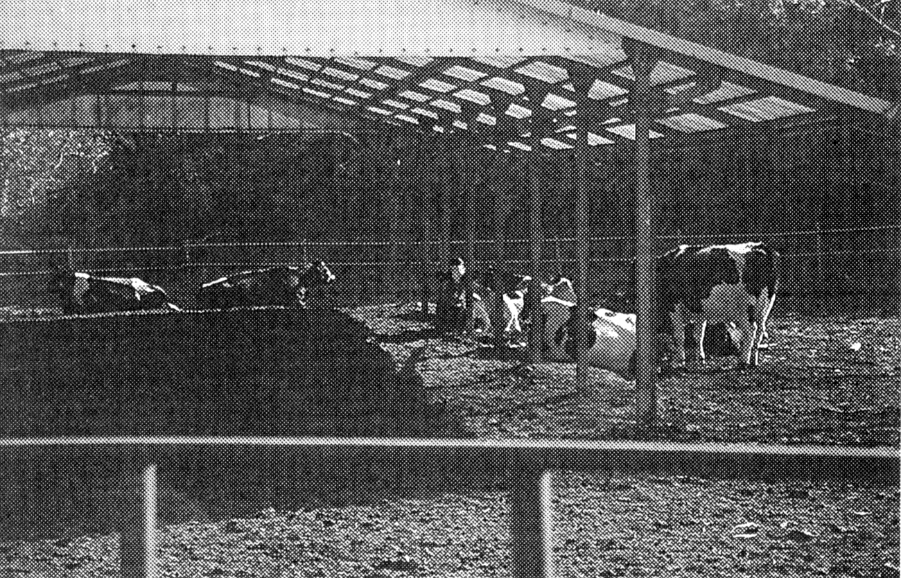 当時、臼杵市野津町にあったミルクファーム首藤。7.5ヘクタールの飼料畑と搾乳牛70頭、育成牛50頭の酪農経営が行われていた。