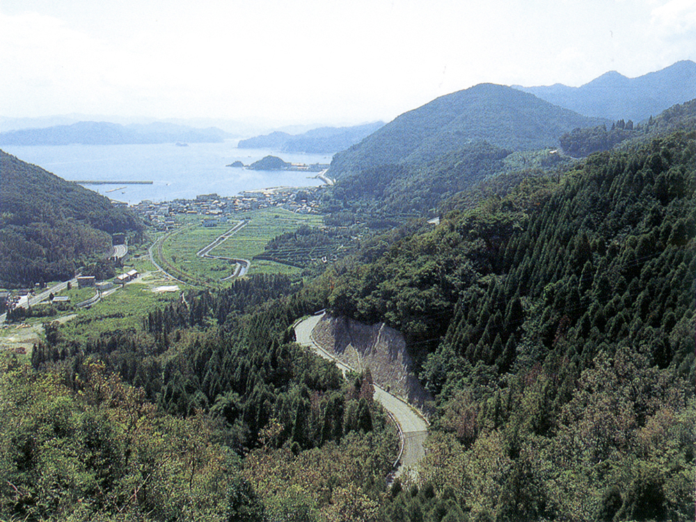 県南部の海岸を特徴づけるリアス式海岸。入り江の浦と浦を結ぶには、船を走らせる以外には、岬や半島を横切る険しい峠道を人の足で越すしか、久しく手段がなかった。津久見市の網代と上浦の津井を結ぶ津井峠も、半島越えの険しい峠の一つ。今は津井トンネルが開通し、人や車の往来はないが、峠の頂上に立つと浦から上ってくる急坂が見え、往時の苦労が偲ばれる。写真は、津井峠の頂上から望む佐伯湾