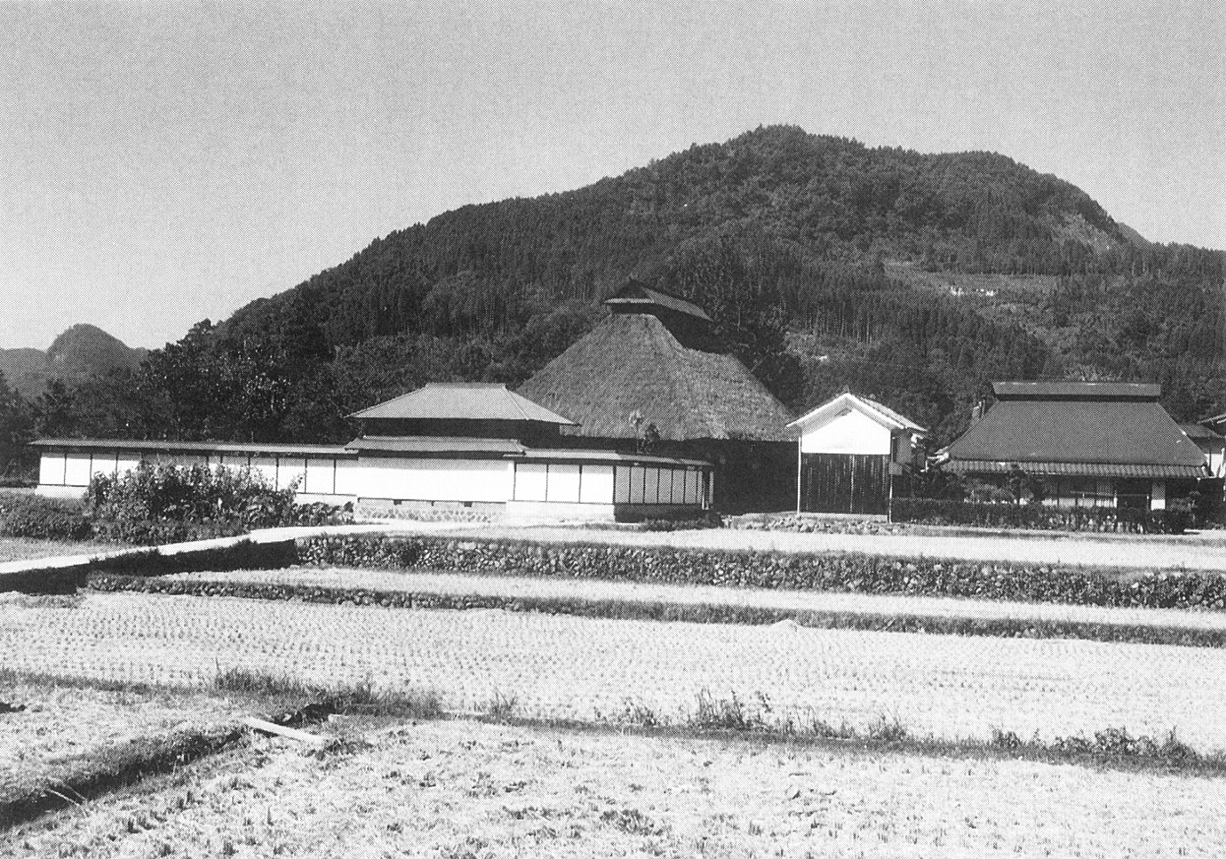下郷に入ると国道から白い板塀に囲まれた大型のかやぶき屋根が見えてくる。かつて島村の庄屋職であったら相良家住宅である。軒高の高い2メートル以上の軒桁を支える出桁椀木の持送りの持つ迫力は堂々たる風格を感じさせる。室内に入ると、土間上の大材をくみ上げた小屋裏や広間境の大黒柱、竹の簀子天井や差し物に打ち込まれた百姓一揆のナタ傷にこの家の歴史が刻まれている。山国川畔の相良家周辺の景観は下郷地区の原風景として心に残る村並みを作っている。