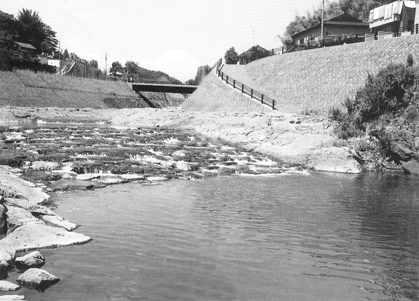 魚が遡上しやすい多段仕立ての早瀬。7月7日は「川の日」。河川の魅力について理解と関心を深めてもらおうと、平成8年度に制定された。河川の持つ自然環境が「親水空間」として見直されつつある。自然はさまざまな恩恵を与えてくれる一方で、自然災害を引き起こす。それに対し、河川改修をはじめとする土木工事が施された。そこは、自然と人間が真剣に向き合う場所であり、自然を理解する場所である。