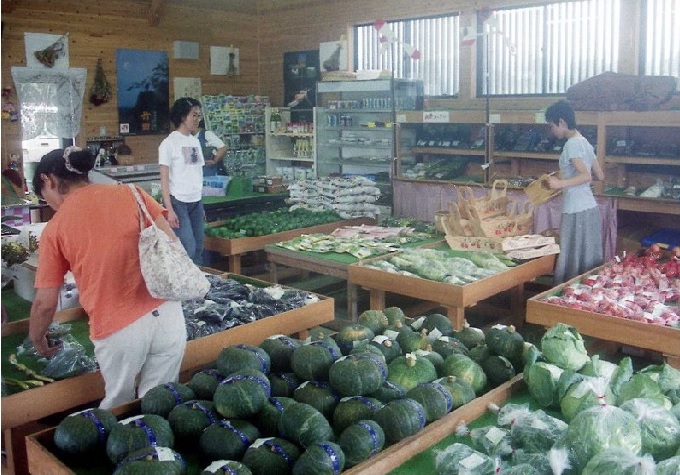 道の駅竹田の農産物直売所。郊外を車で走っていると、田んぼや畑の中に、地元で採れた農産品などを売る直売所を見かける。簡単な小屋掛けの無人販売所から看板を掲げた立派な施設まで、その運営はさまざまであった。
