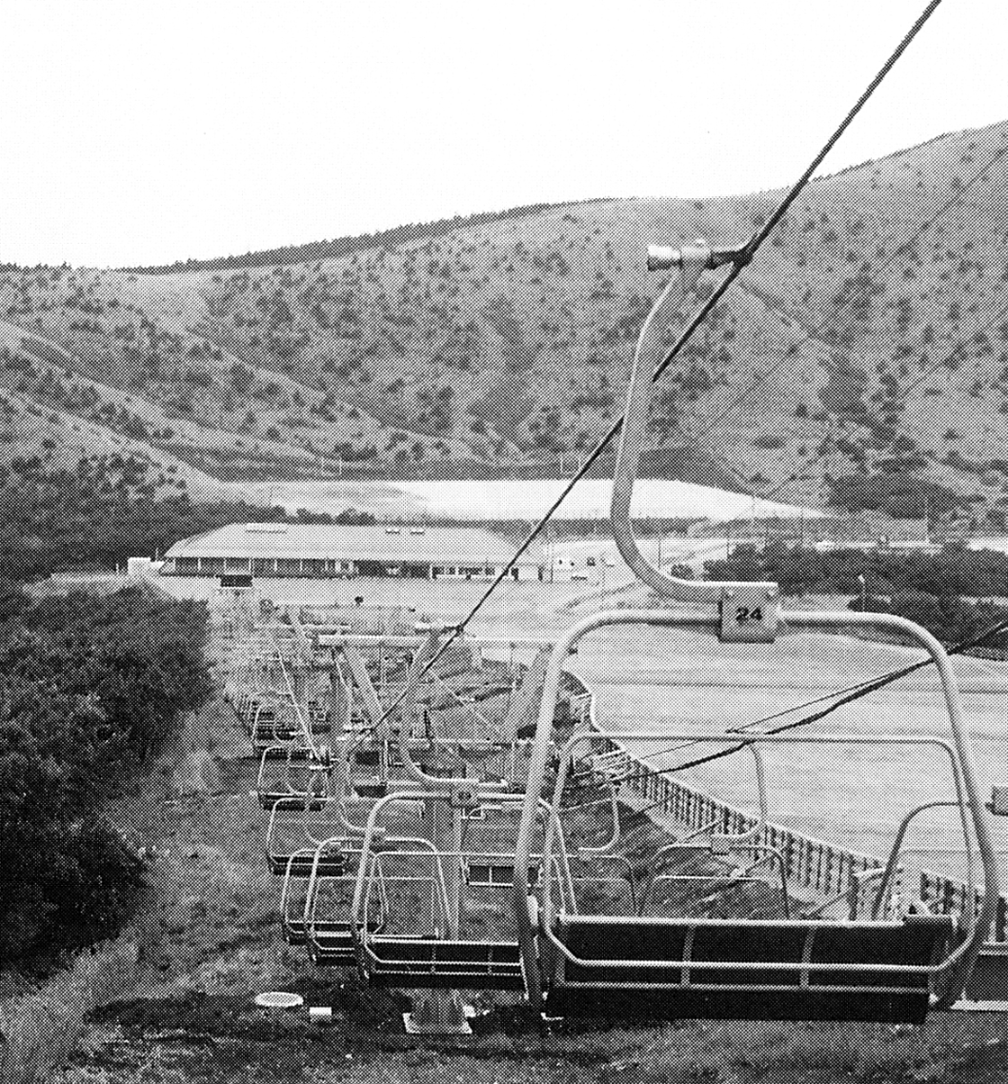 景観に配慮して低く設置したリフト。当時、大分県初のスキー場として、平成8年12月にオープンした九重森林公園スキー場は予想以上の人気を集めた。当初の目標は75日間の営業で6万5千人。実際は暖かな日もあって58日間しか営業できなかったが、目標を突破した。
