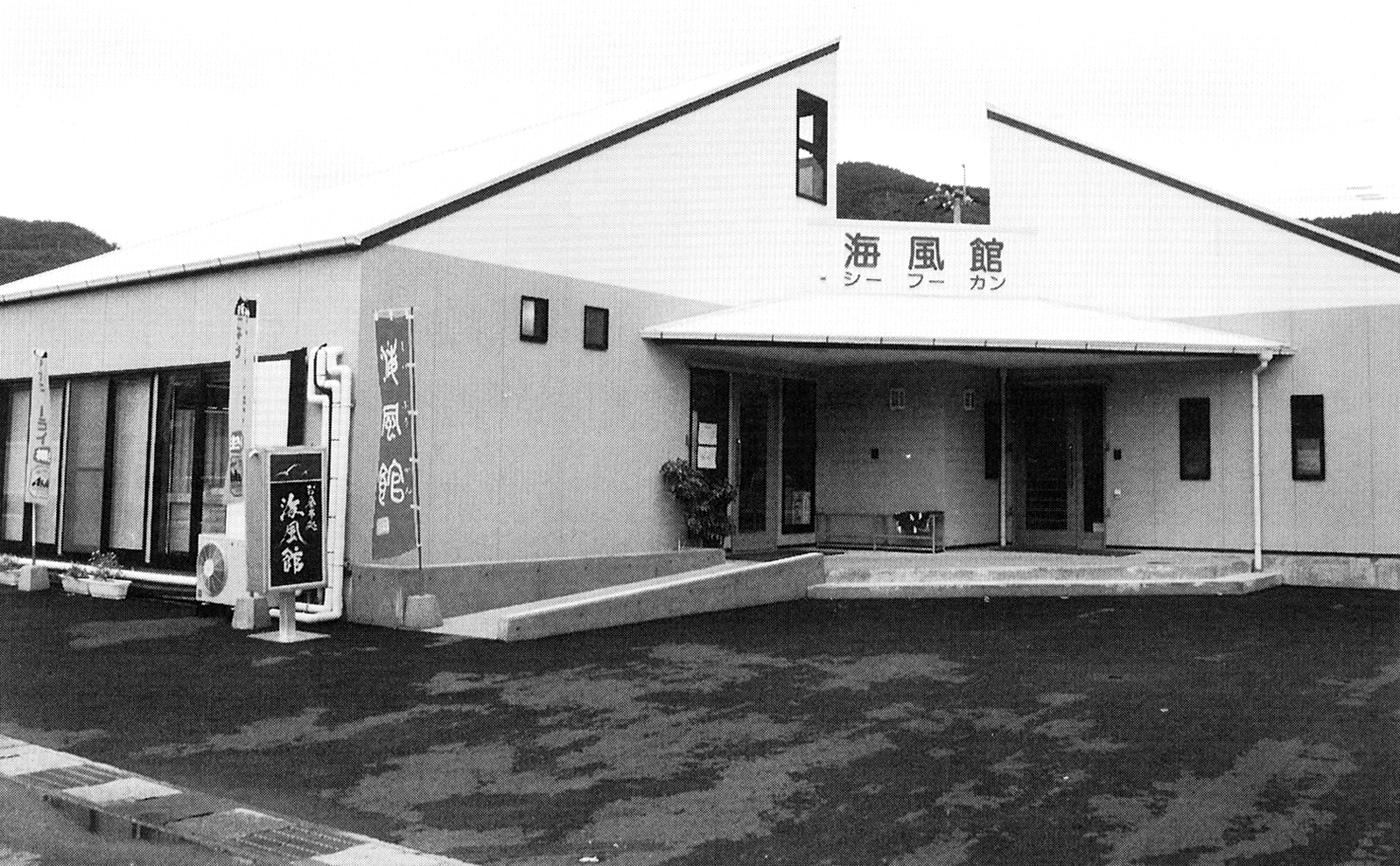 ヨットをイメージした白い建物。「海風館」と書いて「シーフーカン」と読む。佐伯市米水津色利浦(いろりうら)の魚市場近くに平成9年6月29日にオープンしたふるさと物産館である。村が建設し、管理・運営を米水津水産加工協同組合があたった。「海風館」は一般から募集した名前だった。