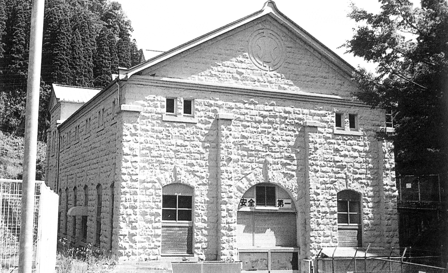 ロマンを感じる石造の洋風建築。九重町中村より飯田高原へと向かう県道沿いの山と鳴子川にはさまれて、白い石造りの小さな発電所がある。九州電力(株)の町田第二発電所である。建物は石造りブロック積みで、鉄骨トラスの小屋組に小さなドーマのある鉄板瓦棒葺の屋根を持ち、上部が半円アーチの大きな窓が並ぶしゃれた外観の洋風建築である。