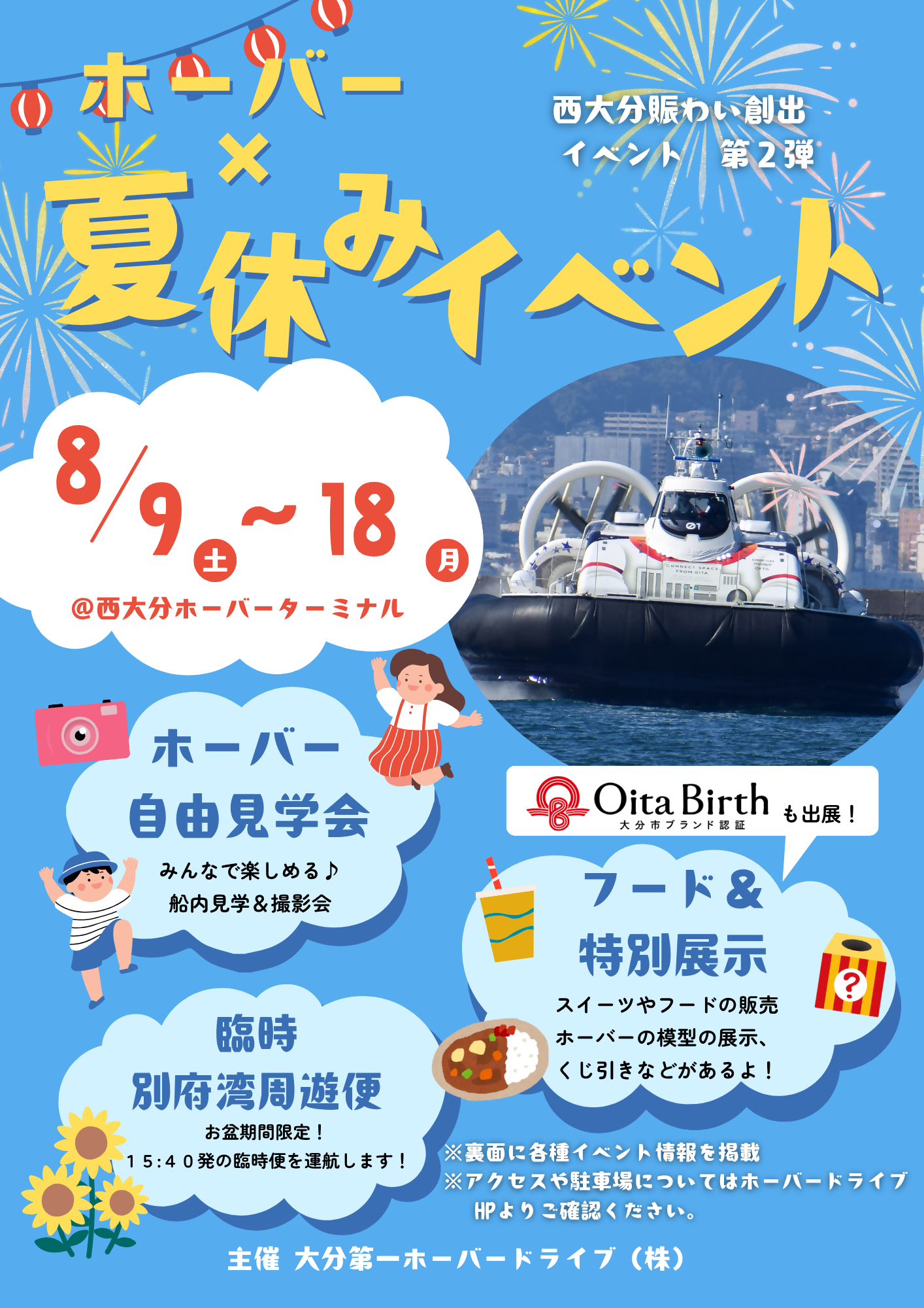 8月17日には「ホーバー自由見学会」、8月13日から8月17日は「別府湾周遊の臨時便運航」も行います。