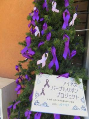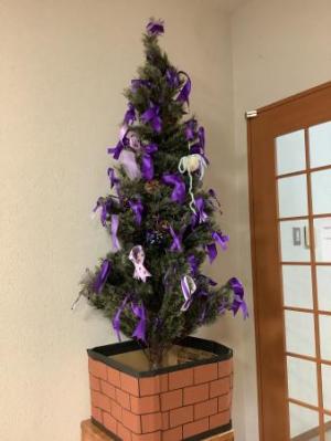 【株式会社友岡組】様 ・広報物の設置、配布 ・パープルライトアップ ・パープルツリーの展示 ・パープルリボンを作成し、期間中(11/11~11/25)制服につける。 期間終了後、クリスマスツリーに飾り付け。 |