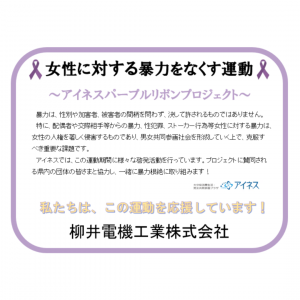 【柳井電機工業株式会社】様 ・広報物の設置、配布 ・パープルライトアップ ・ホームページ、SNSで情報発信 ↑2023年CSRレポート 「ダイバーシティ推進委員会」に 「パープルリボンプロジェクト」について記載