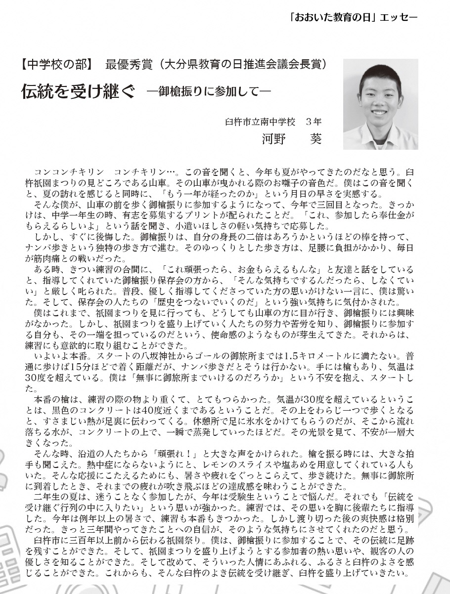 令和元年度 第15回「おおいた教育の日」エッセー入賞作品
