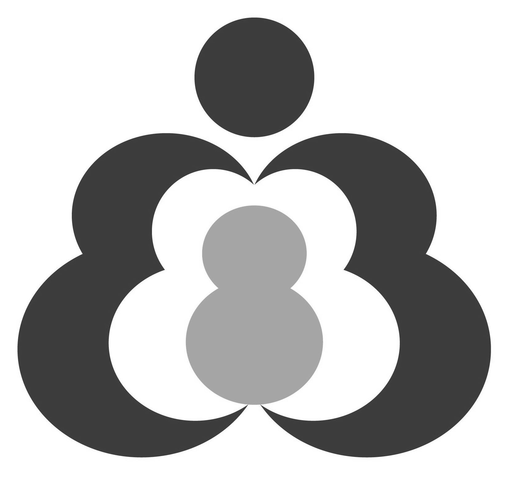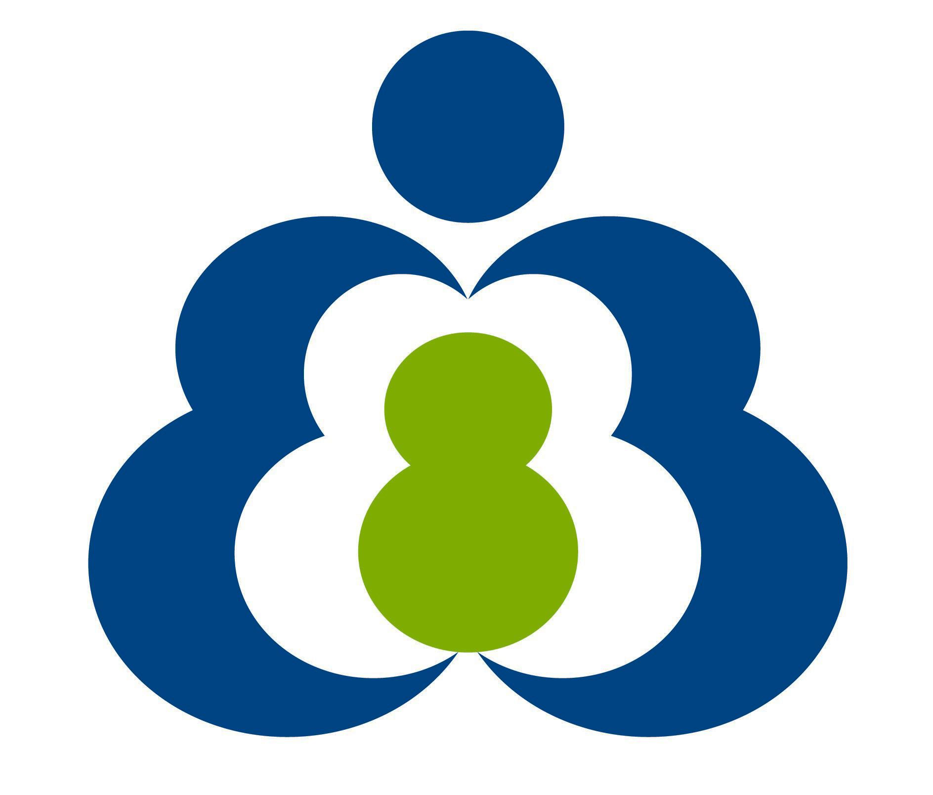 教育(Education)の頭文字「E」をモチーフに、学校・家庭・地域社会の三要素が相互に協力し合い、未来を担う子どもたちを優しく温かく包み込み、育成するよう願いが込められています。外側の大人たちは大海原を表す青色、中心の子どもたちは無限大(∞)の可能性を秘めた新芽を表す黄緑色で表わされています。
