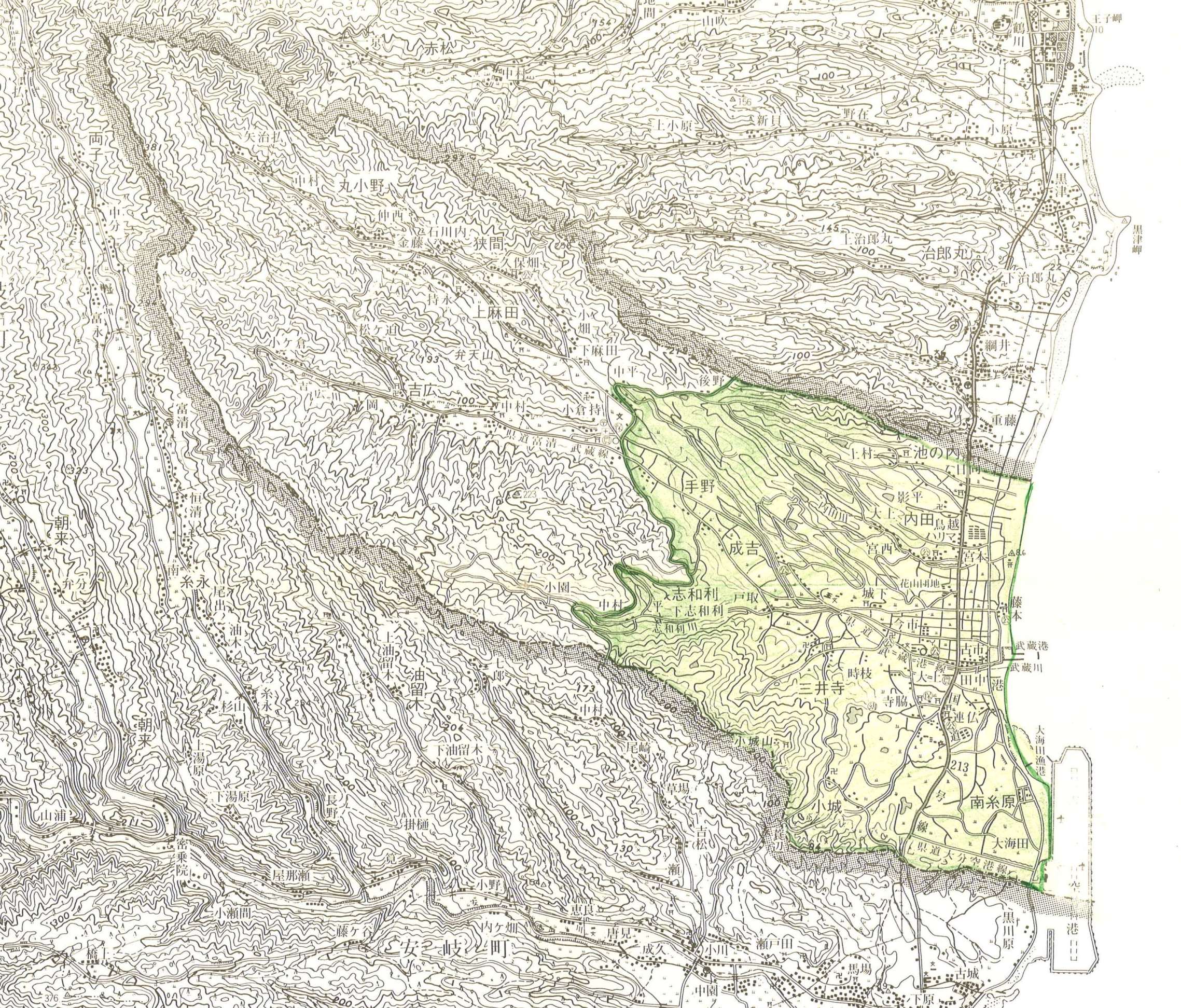 旧国東町の振動規制地域図