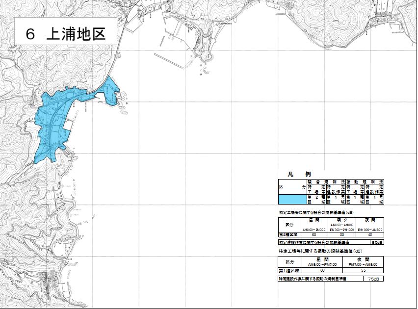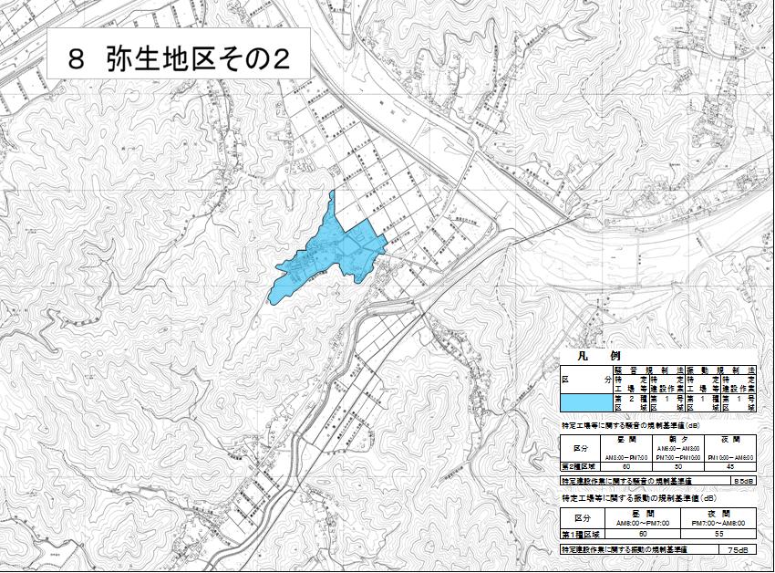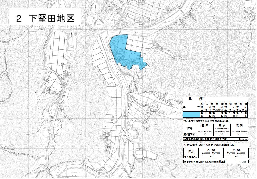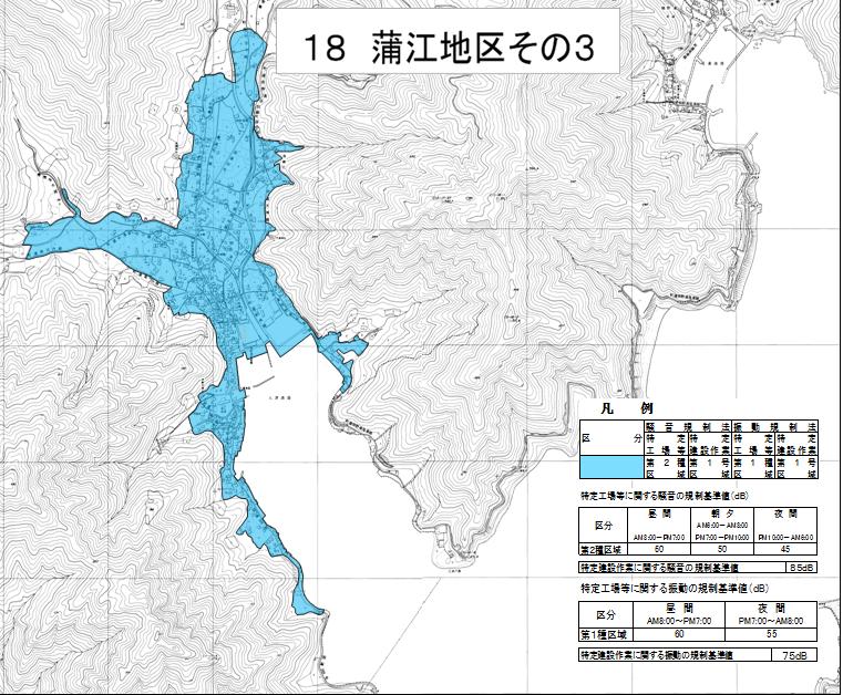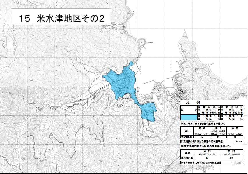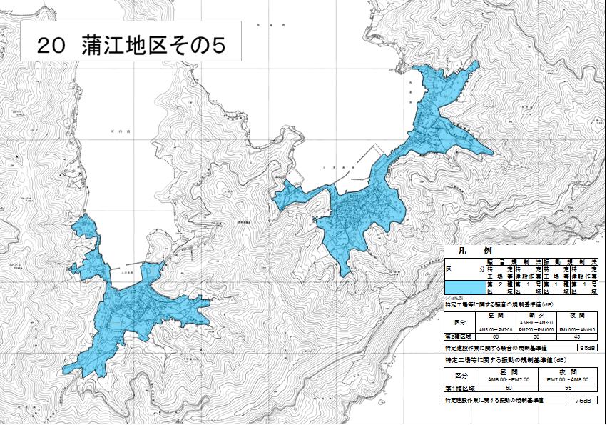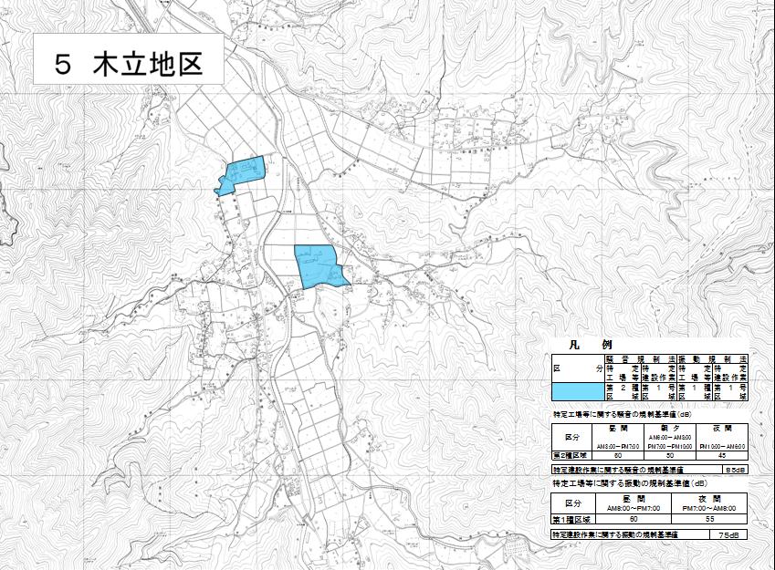 第1種区域:青色 第2種区域:黄色 赤 - 特定建設作業の規制